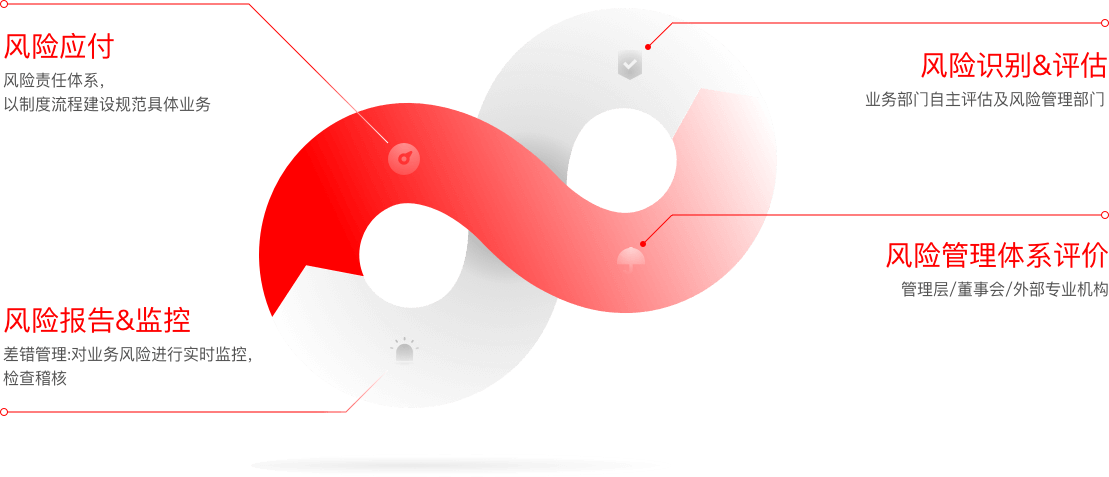 严格的风险控制,审慎的运营管理是公司可持续发展的关键,也是投资者利益的有效保障。 理性而具远见的风险管理不仅针对投资风险,更是渗透公司各个业务环节的全面控制过程。 龙8中国官网唯一入口基金高度重视合规经营,具备完善的风险管理防线与组织架构,以及覆盖全业务流程、 多风险类型、全员参与的风险责任体系。