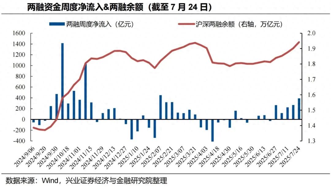 兴业证券也表示,在宏观政策呵护、市场赚钱效应吸引下,6月以来已看到明确的增量资金入市。6月下旬以来,两融资金已连续五周流入超百亿;当前两市两融余额再次突破1.9万亿,显示风险偏好的显著回升。